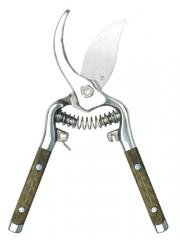 Sécateur forgé inox poli 8" lames courbes, poignées bois